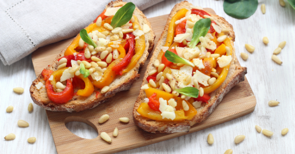 Você acha que já conhece bruschetta o suficiente? Certamente não esta versão com pimentões grelhados, queijo e pinhões. É assim que o clássico italiano pode ser redescoberto.
