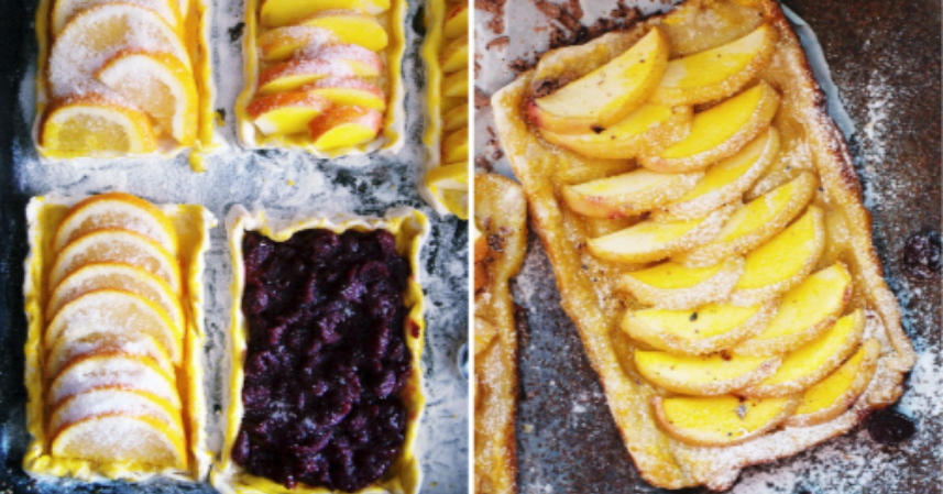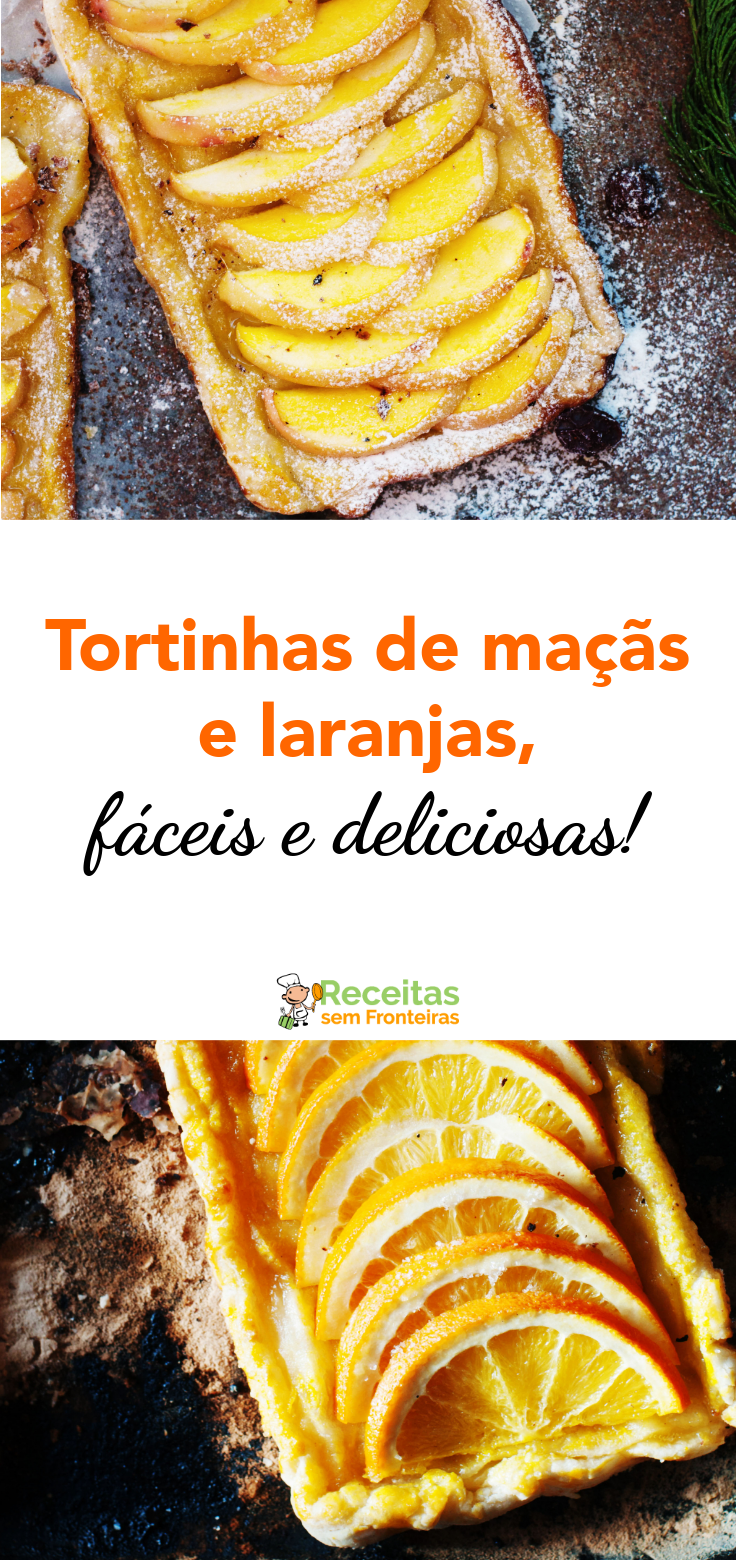 Deliciosas tortinhas com frutas frescas: maçãs e laranjas. A massa folhada fica crocante e se casa lindamente com as fatias de fruta macia. Um doce simples que não podemos deixar de preparar , mas também refinada na sua simplicidade.