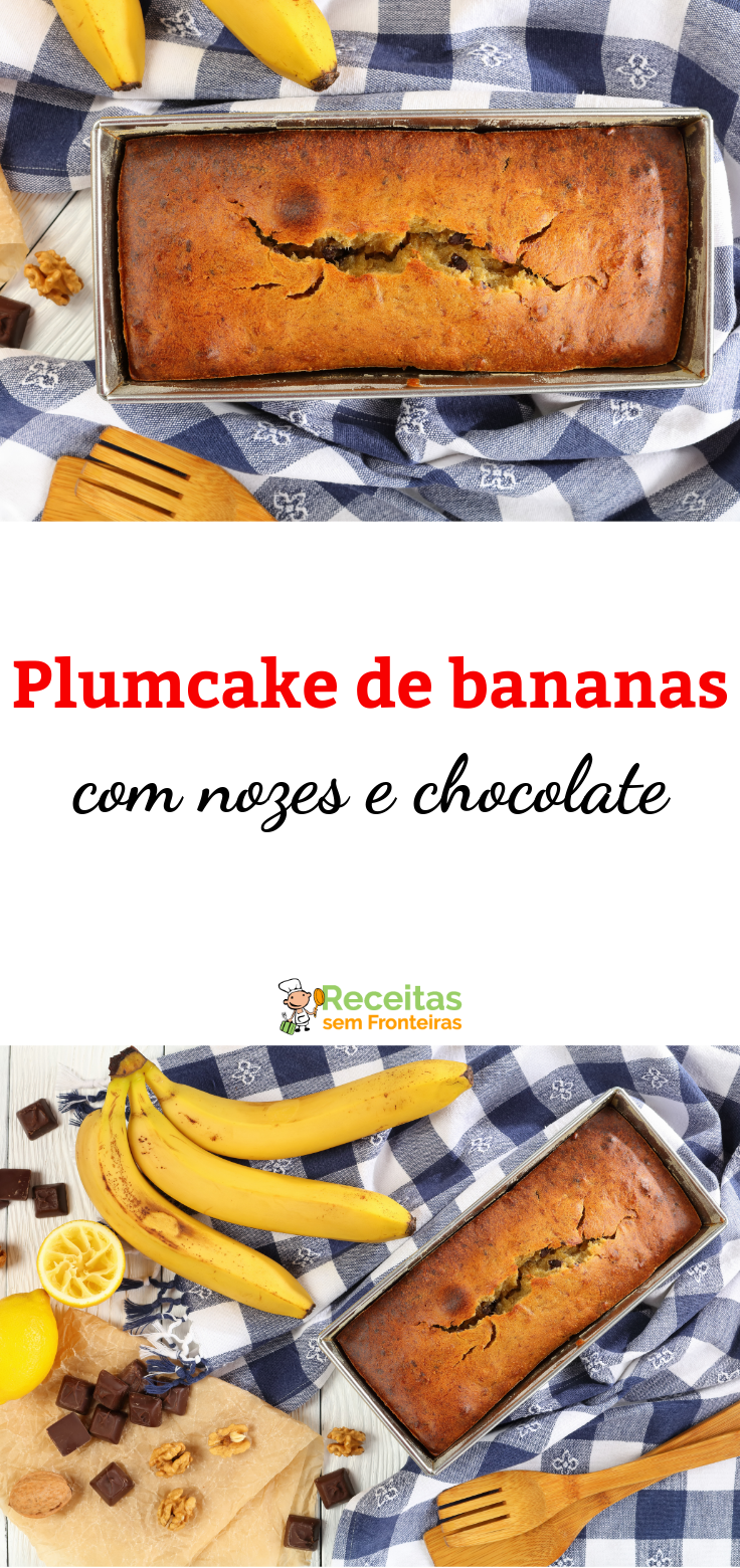 Este plumcake é uma solução ótima e realmente engenhosa para utilizar bananas um pouco maduras demais e criar um bolo com sabor original, perfumado e aromático. O acréscimo de pedacinhos de chocolate e nozes pecan (ou nozes comuns) só pode fazê-lo saborosamente incrível.