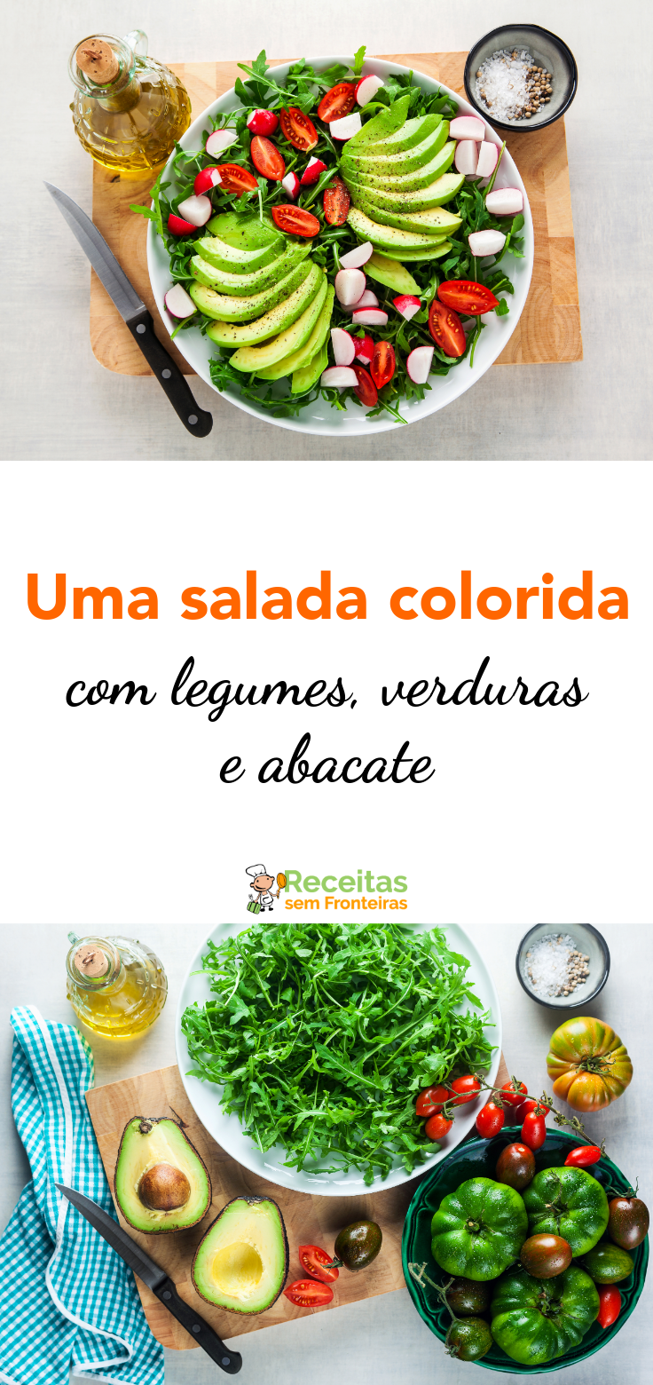 Esta salada colorida com abacate, verduras e legumes é um delicioso e leve prato único.