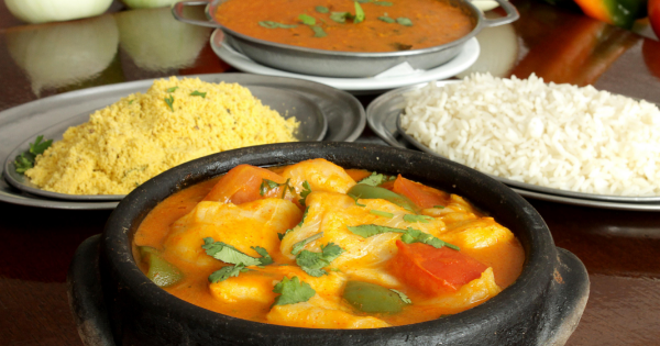 Moqueca baiana, este prato brasileiro típico e delicioso, com seu sabor tropical inigualável