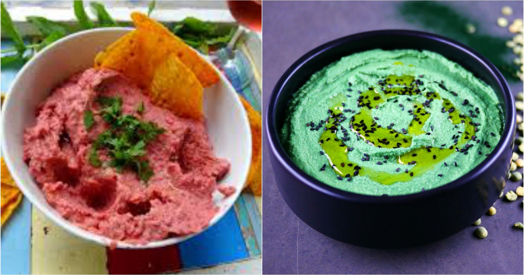 O homus, você conhece, mas o que você diria de experimentar estas variantes com beterraba, cúrcuma, grão de bico ou algas?