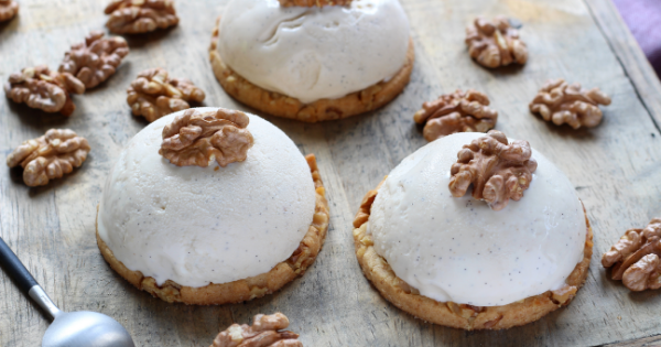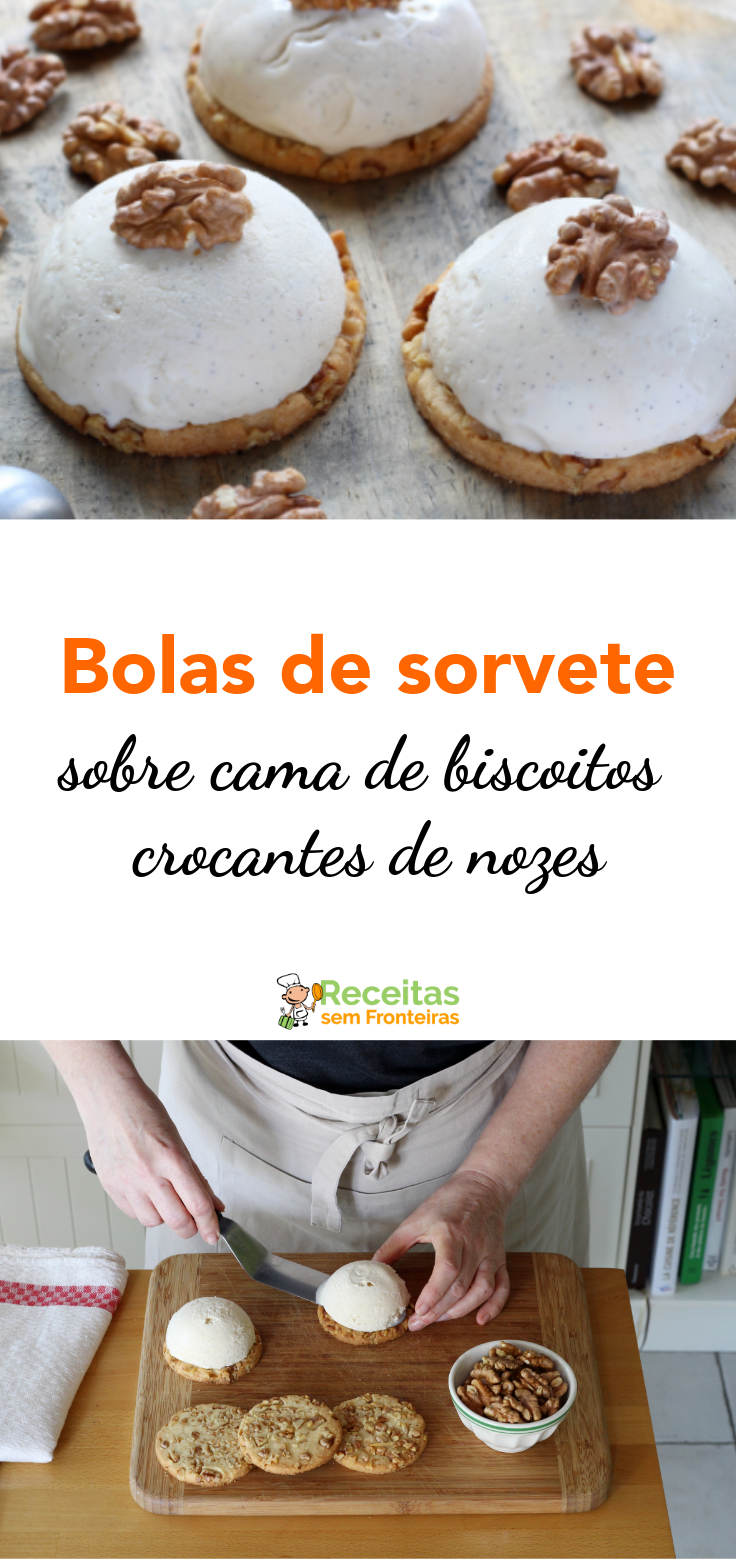 Elegantes bolas de sorvete num chão crocante de nozes