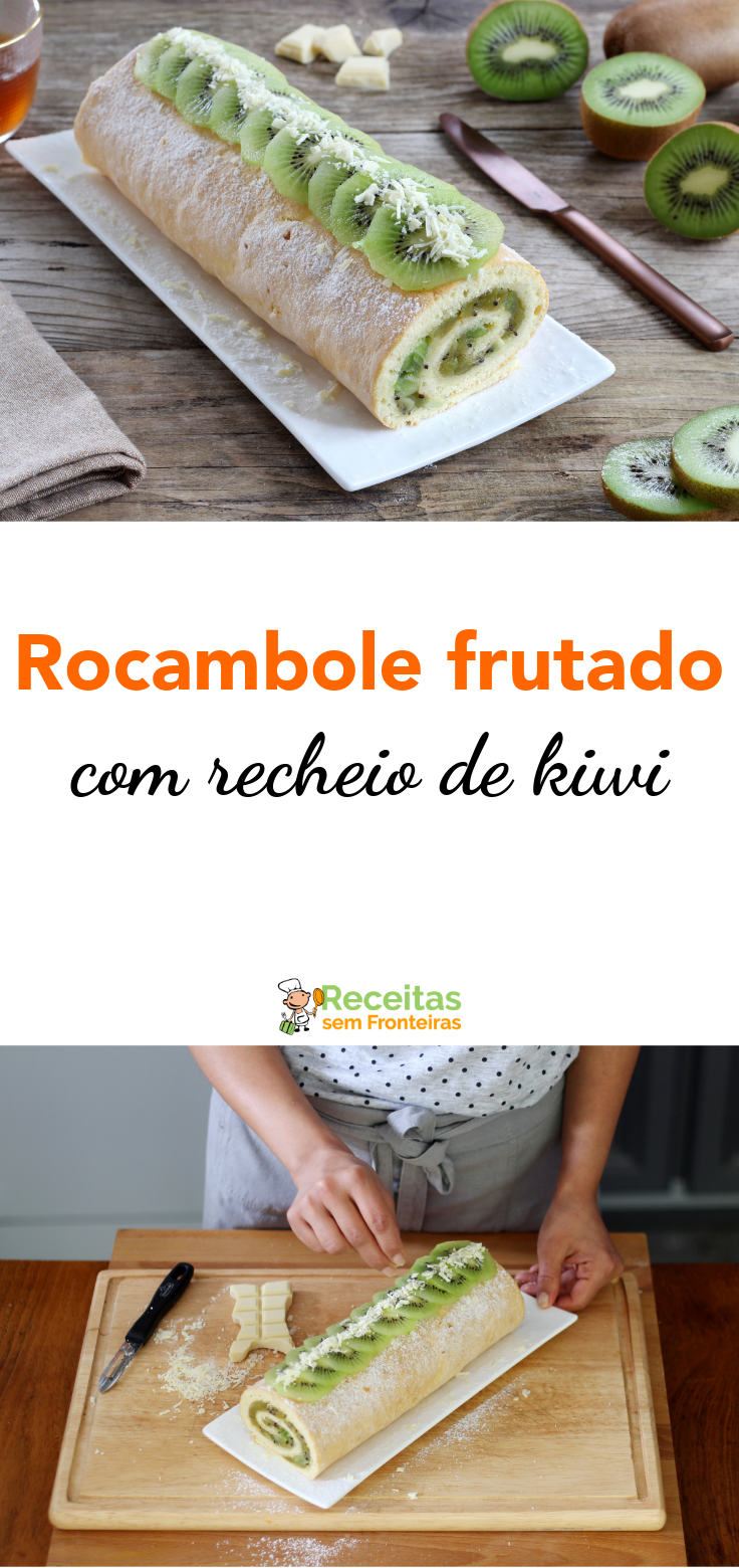 Este rocambole fofo é super fácil de preparar e convence com a sua harmonia fina de doçura e acidez leve dos kiwis. Delicioso!