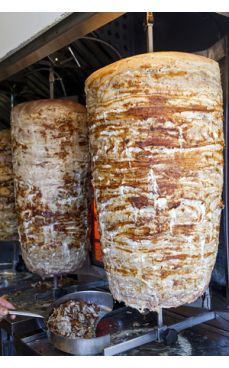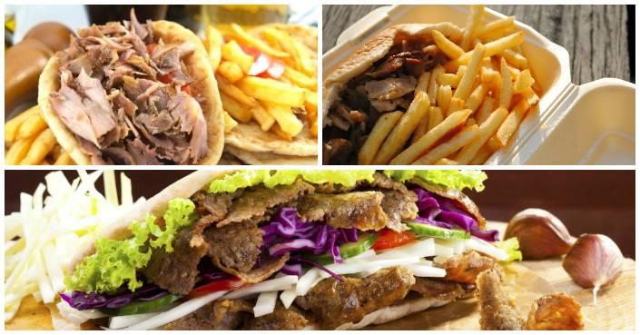 Contrariamente ao que se pensa, o termo kebab não se refere a todo o sanduíche, mas apenas à carne cortada em peças que, uma vez temperada com especiarias orientais, é colocada em espetos e grelhada verticalmente para que seja totalmente cozida. Uma vez pronta, a carne é cortada em lâminas e, depois, entra como recheio dos pães pitta.