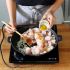 - Coloque um pouco de molho de soja na wok e doure as chalotas e metade do capim-limão cortado em rodelas.