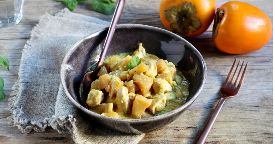 Um curry super original com frango macio, combinado com o sabor doce e característico do caqui.
