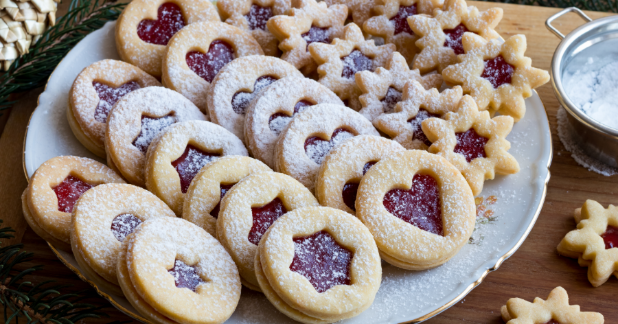 Estes biscoitos são uma ideia saborosa e simples para se preparar algo saboroso. Preparados com uma simples de massa amanteigada e um recheio de geleia, eles são a ideia perfeita para propor um lanche de festa, ou até mesmo como um presente original. Você pode colocá-los em uma embalagem transparente e fechá-las com um cordão colorido.