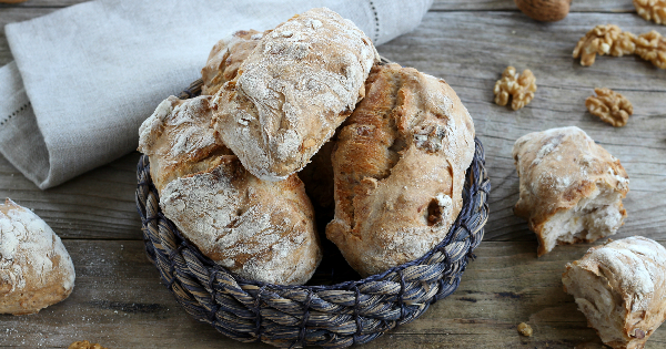 Pequenos pãezinhos saborosos com nozes e rápidos de preparar.