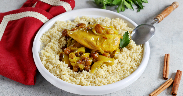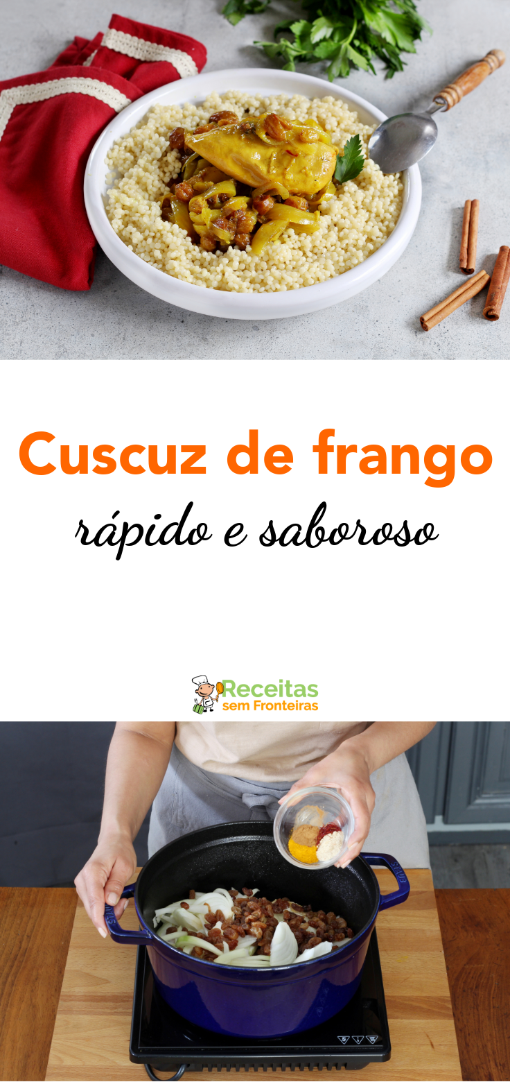Cuscuz com frango, cebola e passas, fácil, simples e delicioso!