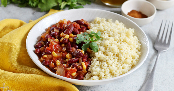Chili de feijão vermelho e sêmola para cuscuz!