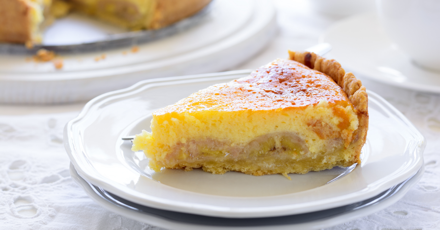 As 3 texturas desta torta de banana vão te levar aos céus!