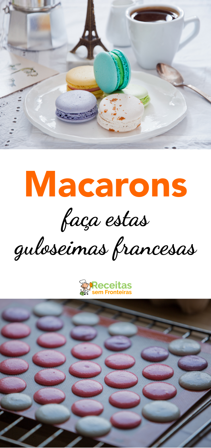 Estes deliciosos e delicados docinhos podem ser encontrados em todas as confeitarias de Paris, mas você não precisa ir tão longe para apreciá-los! Aqui nós damos a você a receita para preparar macarons franceses tradicionais passo a passo, e o melhor de tudo, eles não são tão difíceis quanto parecem. Você só precisa de cinco ingredientes e muita criatividade para aproveitar esta deliciosa guloseima, eles são perfeitos para acompanhar um café!