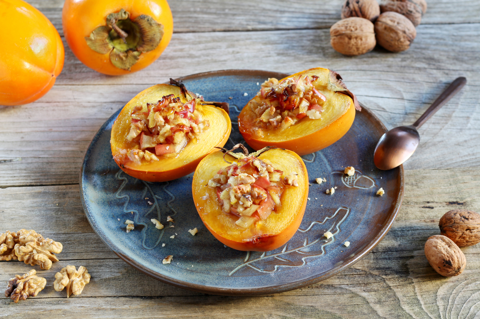 Caquis cheios de doce de maçãs crocante!