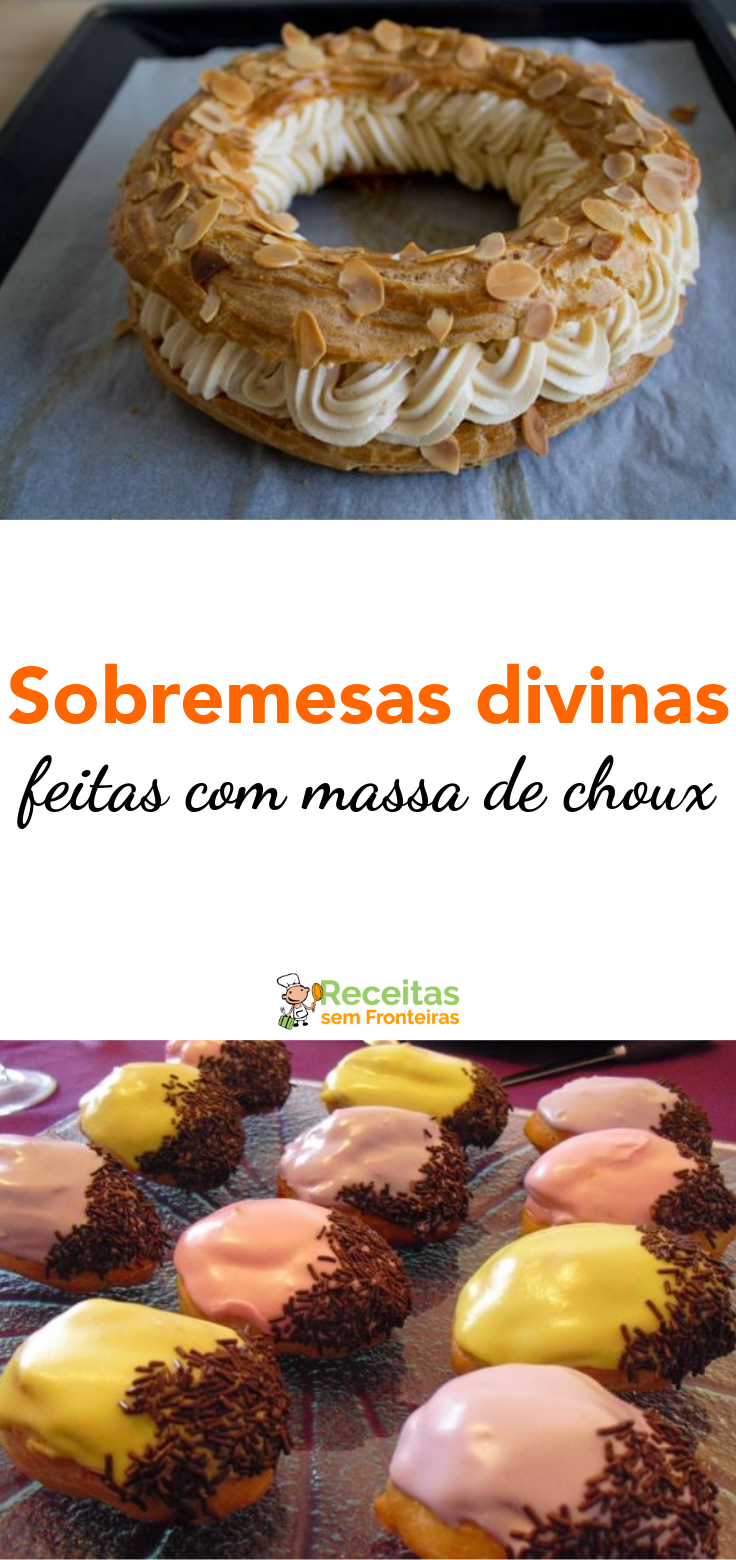 Você talvez nunca tenha imaginado como uma receita de choux pode se transformar em várias receitas de sobremesas incrivelmente deliciosas. Confira nossa seleção de sobremesas feitas com massa de choux, você vai se surpreender.