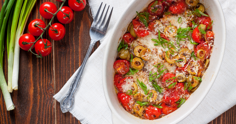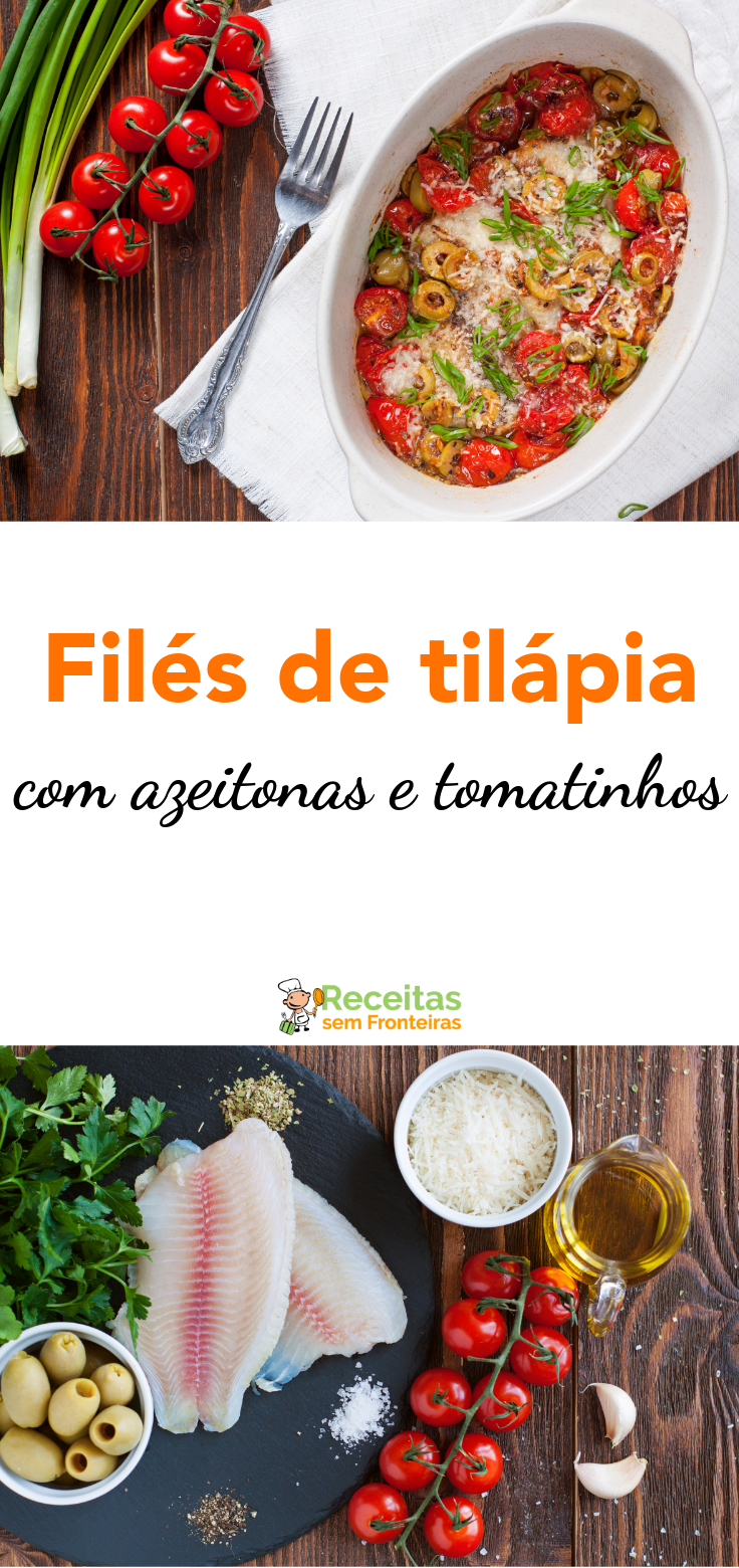 Filés de tilápia com azeitonas e tomatinhos ao forno!