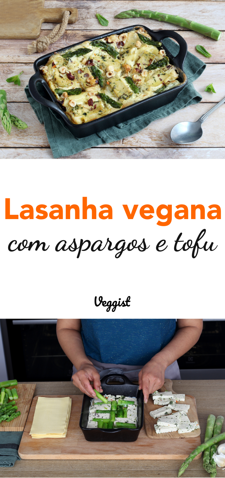 Lasanha vegana com aspargos verdes e tofu, leve e saborosa!