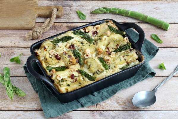 A receita de hoje inclui uma lasanha original: preparada com ingredientes sazonais, eles contêm espargos verdes, avelãs e tofu. Uma combinação original e muito saborosa de sabores, para experimentar uma lasanha com sabores inusitados.