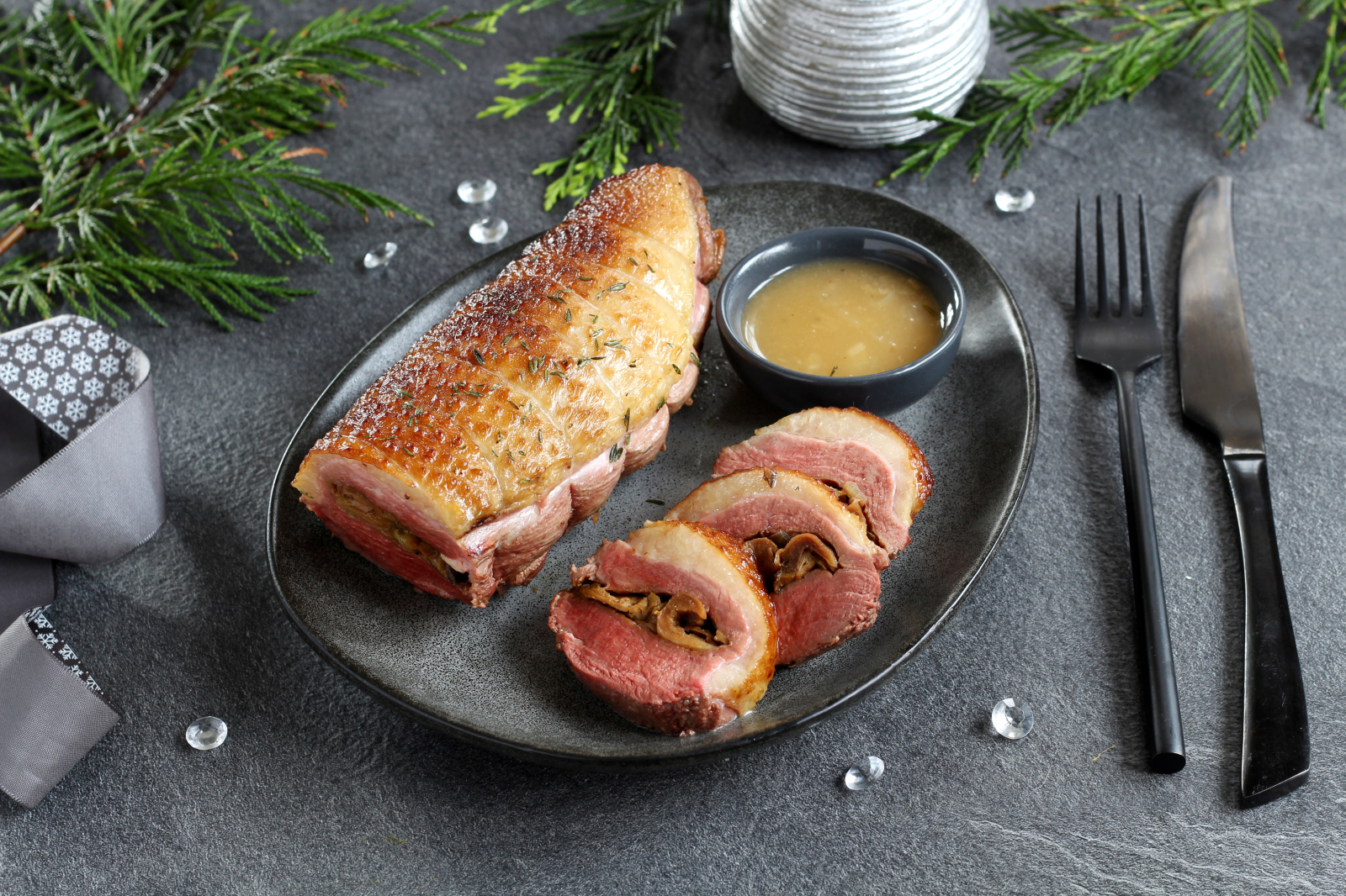 Peito de pato recheado com cogumelos porcini!