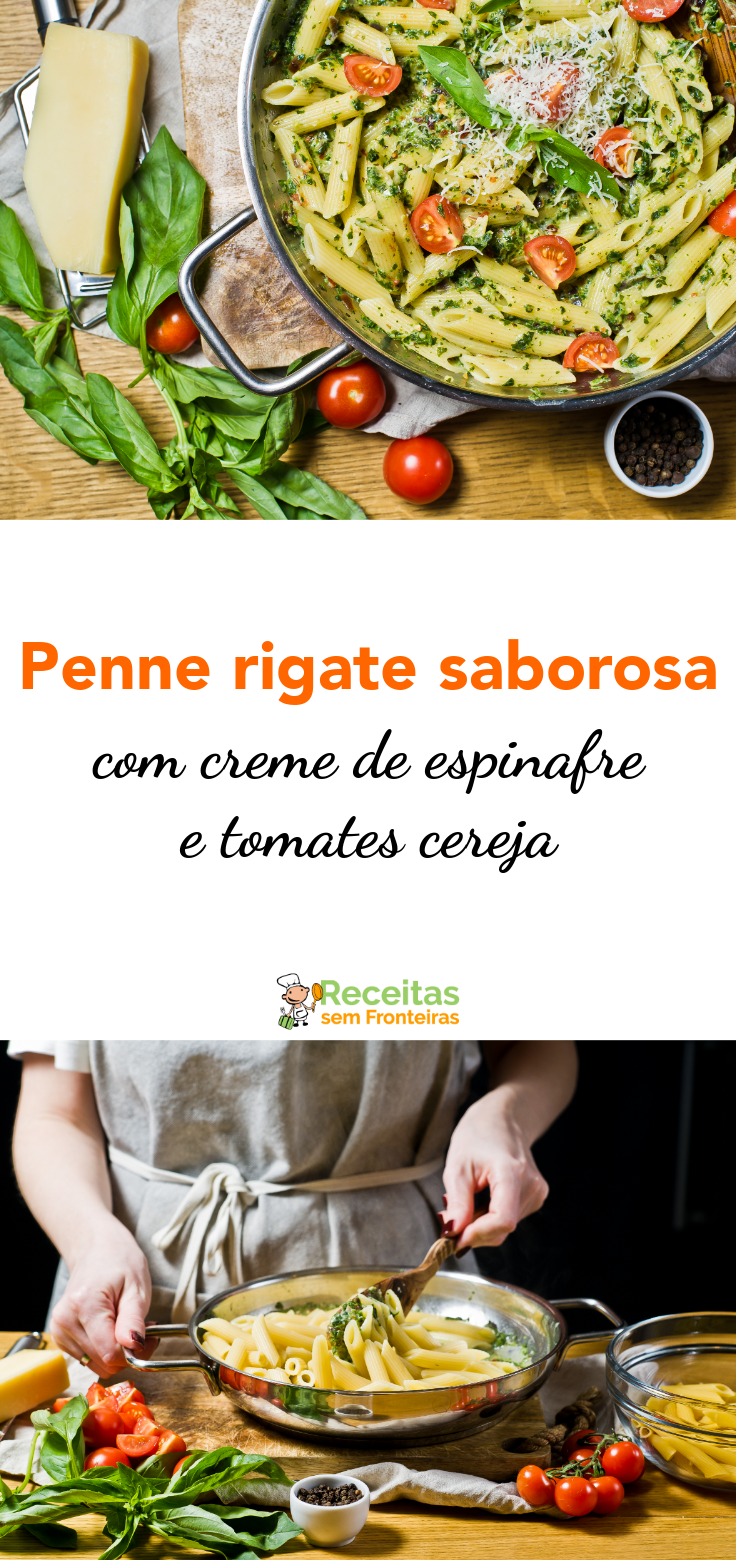 Um prato com sabores delicados, cremoso graças ao espinafre e fresco graças aos tomates cereja. A preparação é muito simples e não requer muito tempo. Uma massa que certamente agrada a todos e conquista até mesmo as crianças mais resistentes ao sabor do espinafre. Experimente!