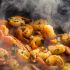 - Coloque um pouco de molho de soja na wok e doure as chalotas e metade do capim-limão cortado em rodelas.