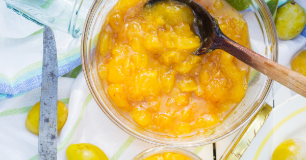 Para preparar uma deliciosa geleia, tudo que você precisa fazer é comprar (ou, se tiver sorte, pegar) algumas ameixas gotas de ouro, com as quais você pode preparar uma geleia muito suave e deliciosa. A vantagem das geleias caseiras é que você pode escolher frutas, assim você pode decidir exatamente quais ingredientes serão usados.