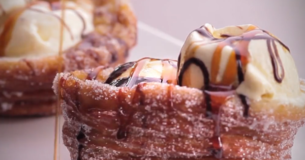 Se você gosta de churros, não vai perder esta receita perfeita! O sabor é o mesmo, mas o recheio é muito mais abundante e você pode variar do jeito que preferir, doce de leite, Nutella, sorvetes de sabores variados... A criatividade é o limite para esta gostosura!