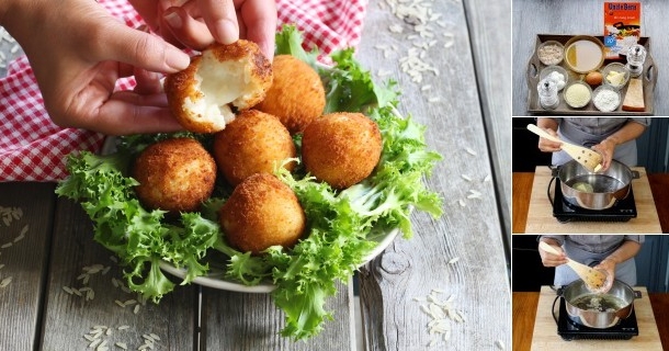 Descubra estes croquetes de arroz recheados com mussarela, que fica derretida depois de fritos. São surpreendentes!
