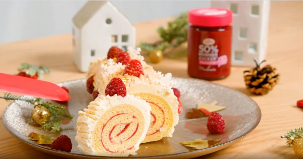 Tronco de Natal refrescante com geleia de framboesa e limão