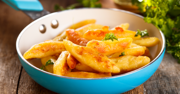 Aí vem um prato clássico alemão que sempre te deixa satisfeito: Schupfnudeln. O macarrão de batata caseiro é tradicionalmente feito com chucrute e bacon (receita no final da praparação do macarrão de batata), mas também são servidos com cogumelos frescos e ervas do jardim.