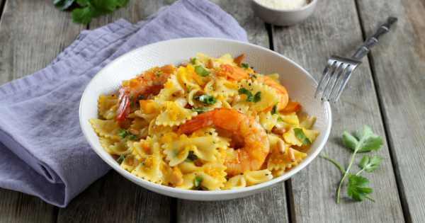 O sabor ligeiramente adocicado da abóbora encontra o aroma marítimo dos camarões. Imperdível para todos os fãs de massas que desejam experimentar algo novo.