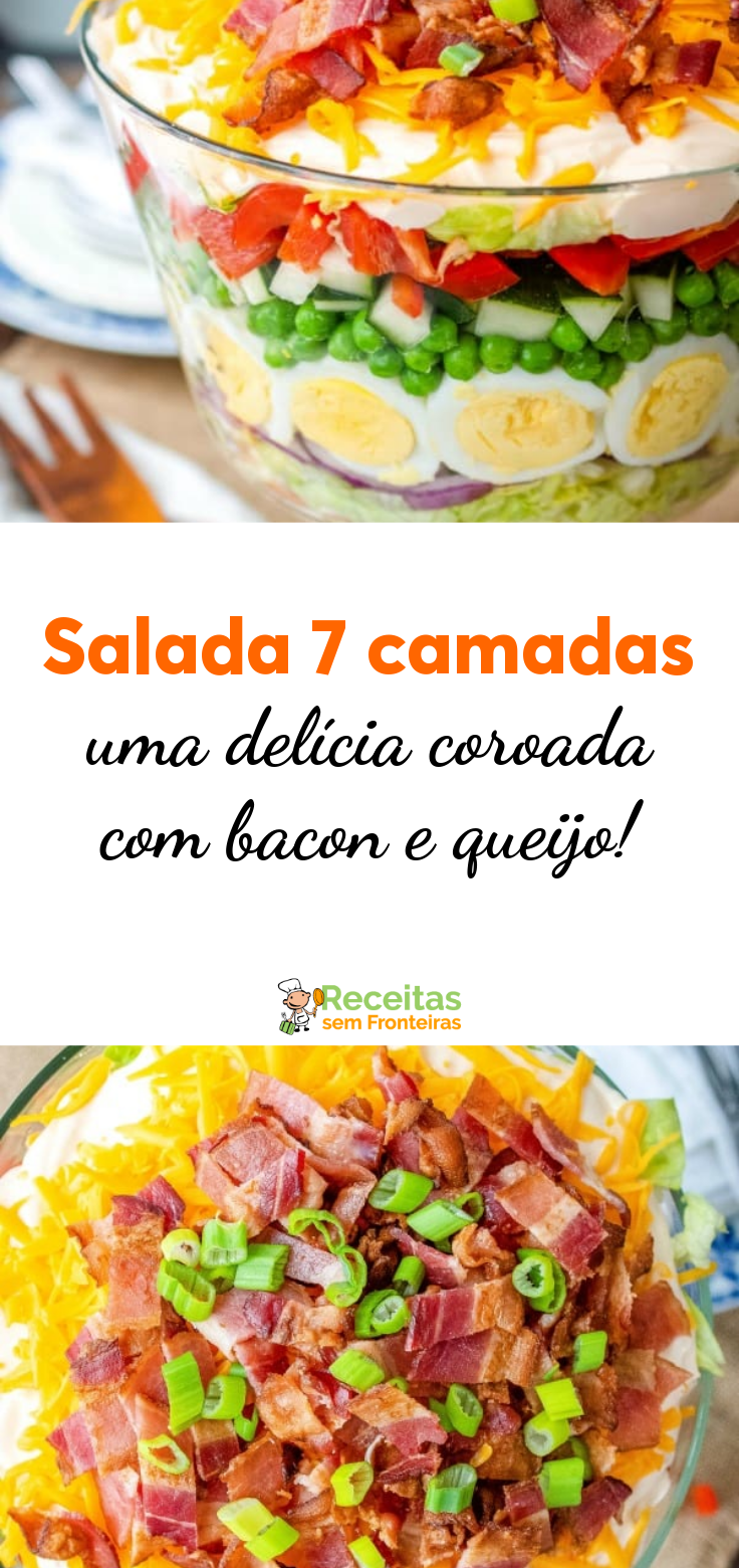 Salada 7 camadas, uma delícia coroada com bacon e queijo!