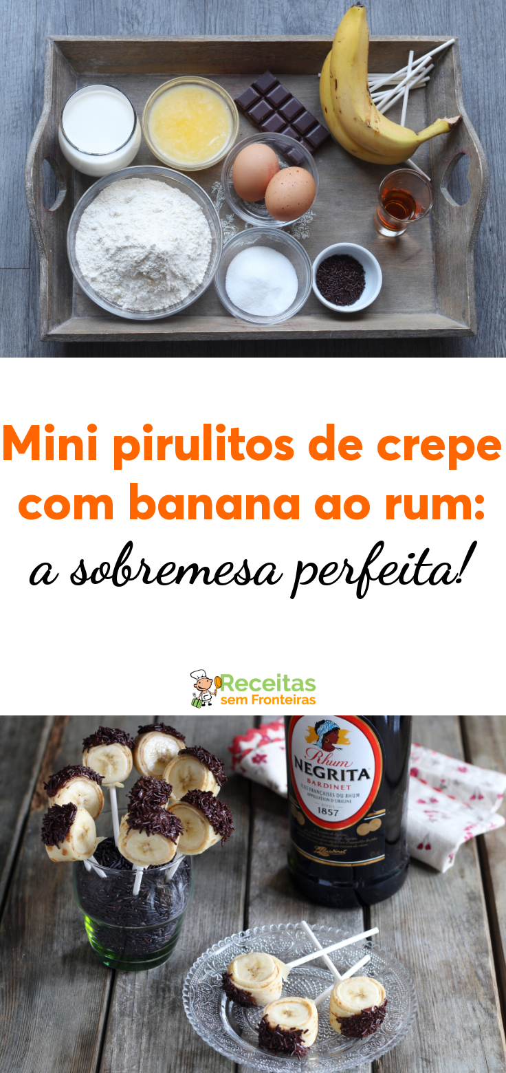 Mini pirulitos de crepe com banana ao rum: a sobremesa perfeita!