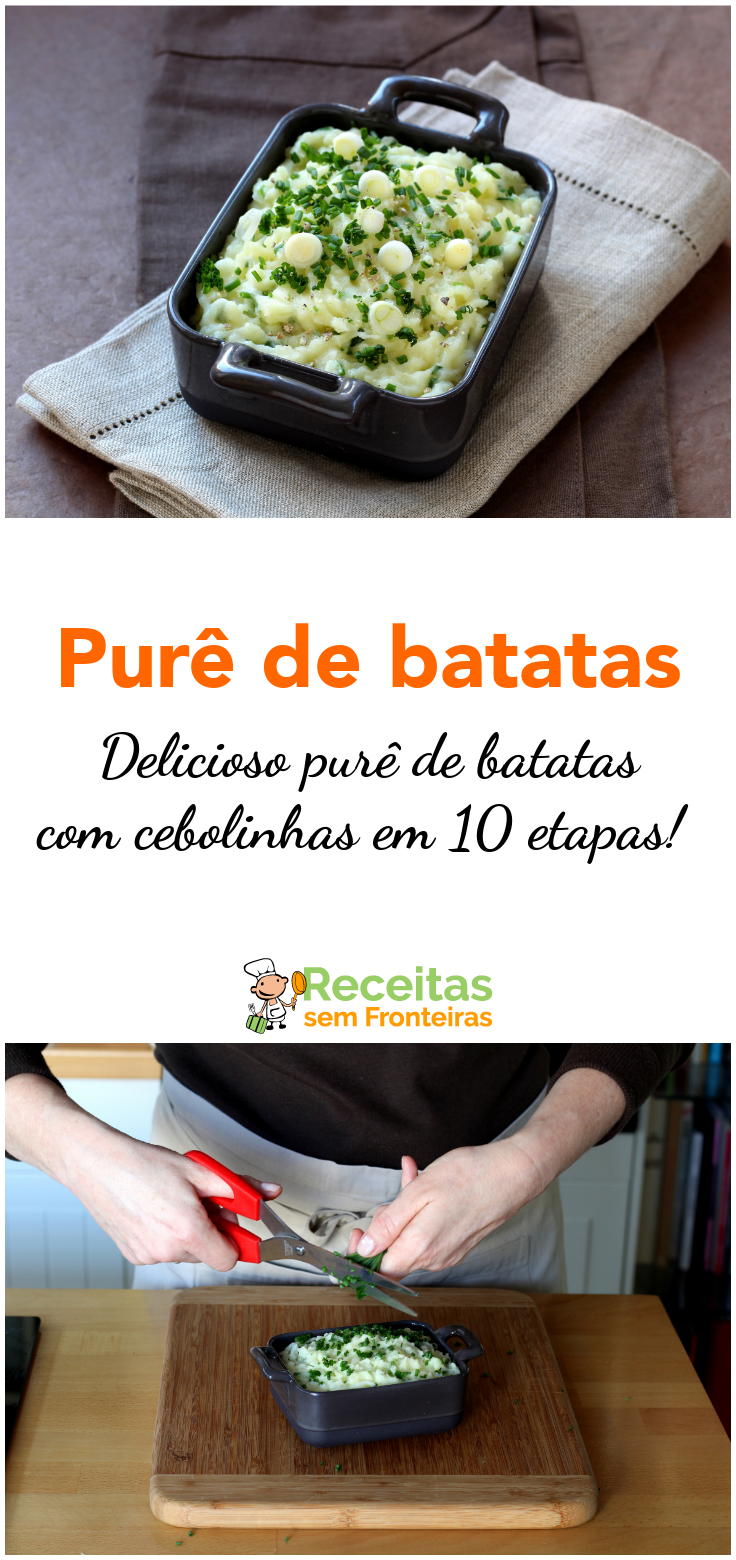 Um bom purê de batatas, ninguém resiste. Nesta versão, nós partimos da receita de base na qual nós acrescentamos cebolinha picadinha, que traz frescor e algo mais em sabor.