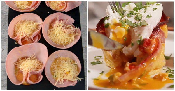 Ovos, creme de leite e outras coisinhas mais em um leito de presunto, coberto de muito queijo e um ovo poché, você resiste a este delicioso petisco?!