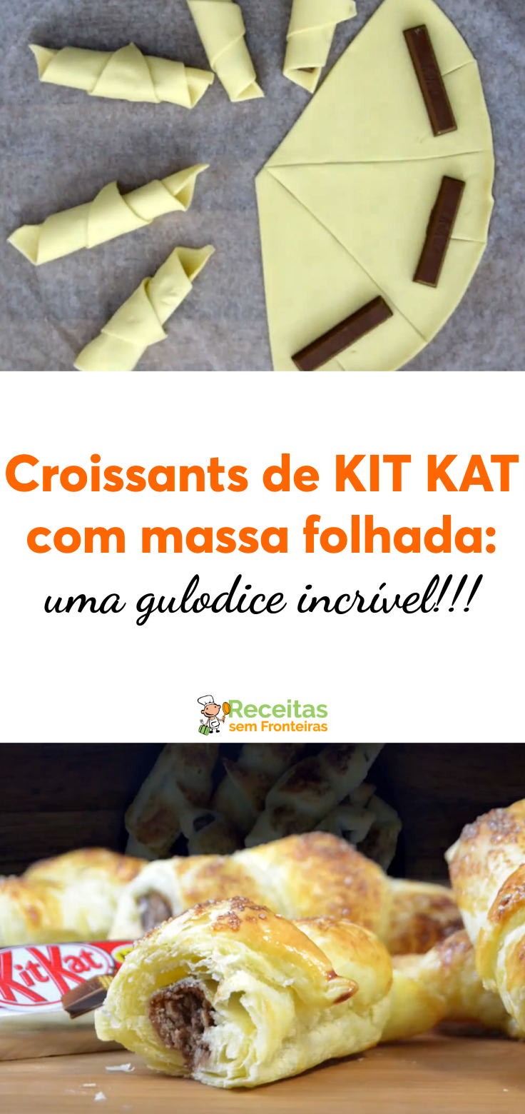 Impossível resistir a estes deliciosos croissants feitos com massa folhada e recheados com o maravilhoso chocolate Kit Kat...