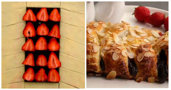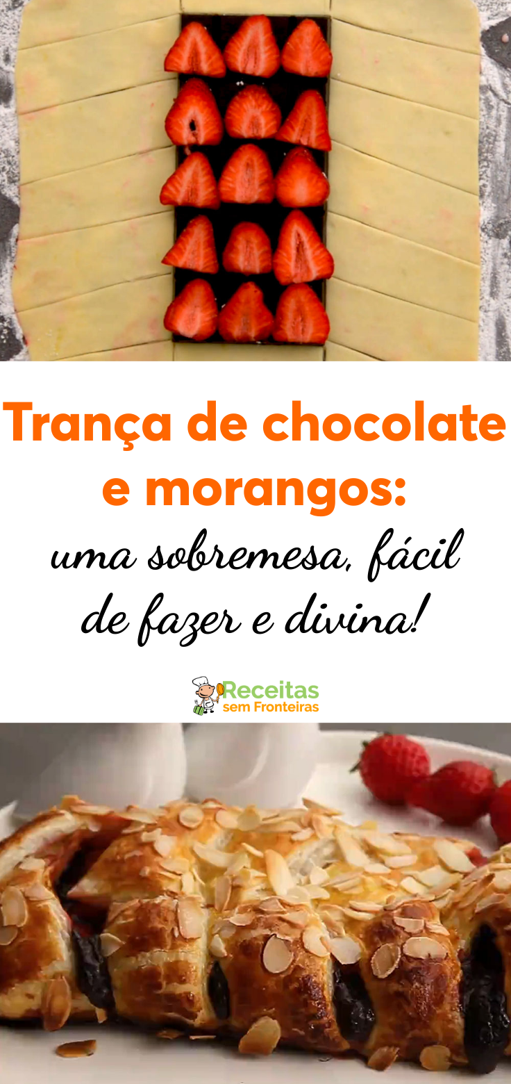Somente 3 ingredientes nesta trança de chocolate e morangos!