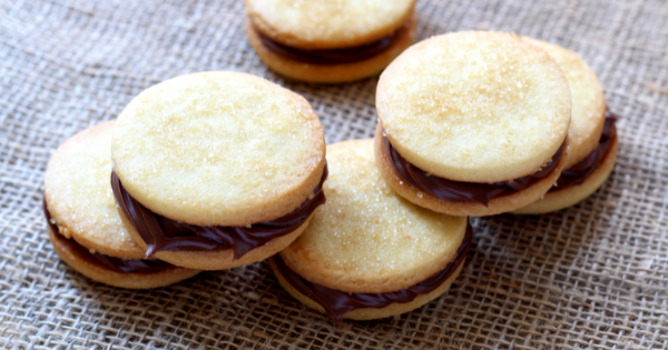 Quem não curte um biscoitinho? Se for amanteigado, melhor ainda... mas se eles forem recheados de Nutella? Bom demais, né? Mas se você não curte Nutella, troca por outra coisa, doce de leite, geleia...