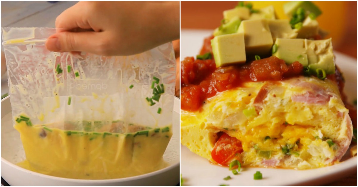 O segredo desse preparo é simples: use um saco plástico. É feito em menos tempo, quase nada suja e você come uma omelete deliciosa e fofa.