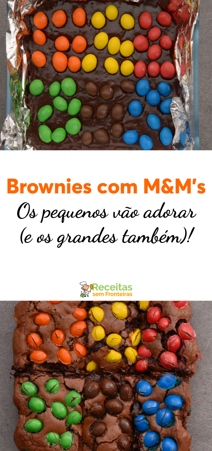 Uma super receita de brownies com M&M's, as crianças vão adorar (e os grandes também)! A crocância dos M&M's é tudo de bom!!!