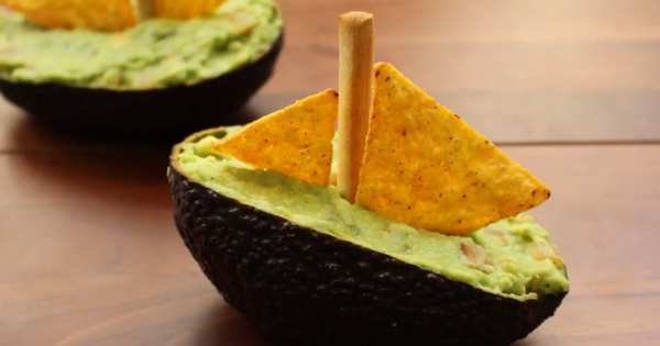 Aproveitar a casca do abacate para servir a guacamole em forma de barquinhos e ainda usar Doritos para enfeitar é tudo de bom! Quer ideia melhor que essa?