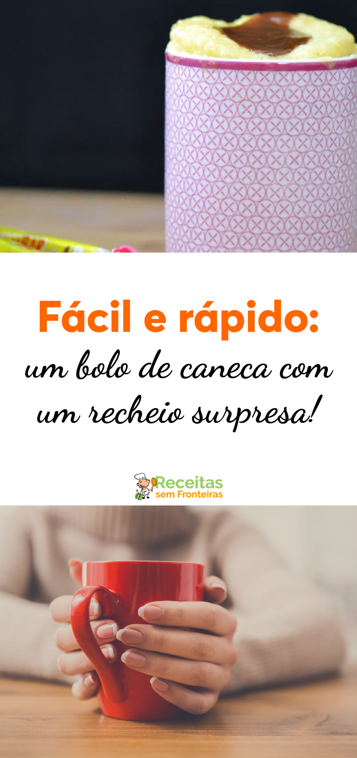 Um bolo de caneca perfeito para os amantes de recheios surpresa, haja gulodice com esta sobremesa rápida e muito fácil de fazer!