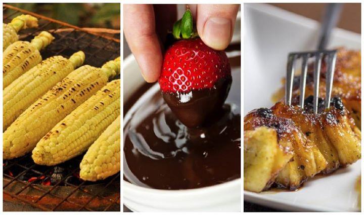 As frutas apenas grelhadas na churrasqueira são um regalo. Escolha frutas como figos, pêssegos, abricôs, abacaxis, maçãs... Corte-as em fatias não muito finas e coloque-as alguns minutos na churrasqueira. Para uma receita ainda mais gourmande, pincele um pouco de mel antes de fazê-las grelhar. Acompanhe de uma bola de sorvete de baunilha... huuum... perfeito!