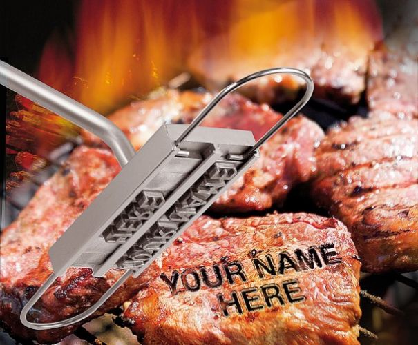 Nada mais fino do que personalizar seu corte de carte com seu nome ou frase preferida, já pensou? Escolha o texto e coloque no ferro, aqueça na brasa da churrasqueira e queime a carne antes de servir! Você vai deixar os amigos morrendo de inveja!