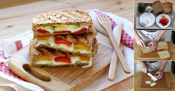 Para comer rezando: croque-monsieur de abacate, mussarela e pimentão - Receita passo a passo