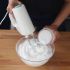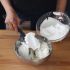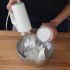 Bata as claras em neve firme e coloque 40 g de açúcar (quando as claras começarem a ficar em neve, colocando-o lentamente e continuando a bater).