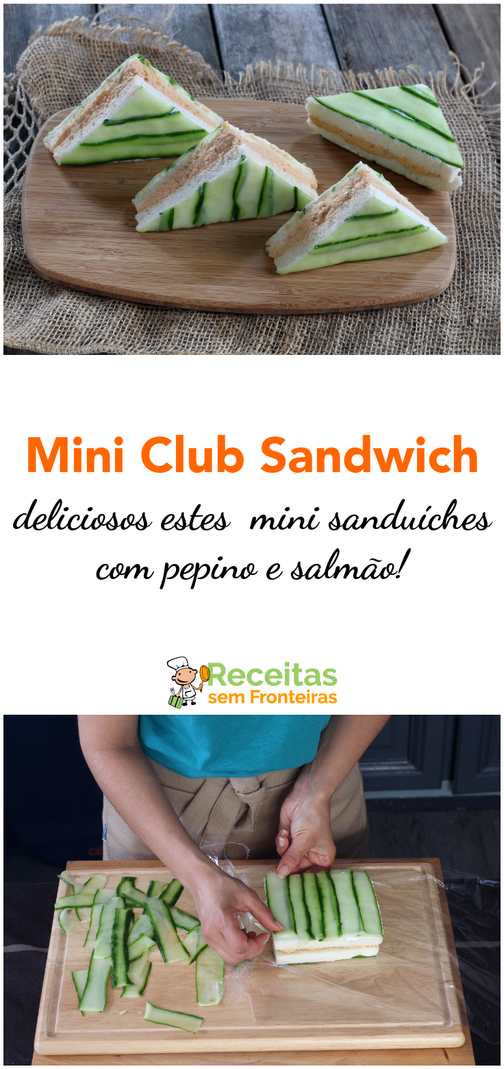 Deliciosos estes MINI CLUB SANDWICH com pepino e salmão! Receita passo a passo