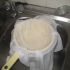 Deixe descansar por, pelo menos, três horas. Coloque o pano na forma de tamanho médio, depois coloque a forma numa panela, de modo que ela fique um pouco suspensa. Despeje, então o queijo dentro da forma com o pano. Deste modo você vai separar o queijo do soro.