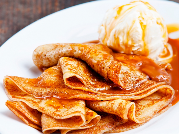As sobremesas flambadas têm um charme especial e ficam ainda mais sensacionais quando servidas com uma bola de sorvete. O contraste frio-quente e a mistura de sabores fazem delas algo divino. As frutas mais tradicionais para serem flambadas são as bananas, pêssegos ... mas devemos lembrar ainda do famoso Crêpe Suzette, criada pelo cozinheiro Auguste Escoffier em homenagem a uma certa Suzette (crepes regados com uma calda de laranja feita com:  suco de duas laranjas, 75 g de açúcar, raspas de laranja e 175 g de manteiga. Dobrar os crepes em quatro numa frigideira, derramar o xarope, deixar absorver e depois derramar 80 ml de Grand Marnier ou Cointreau e flambar). Servir com sorvete de baunilha.