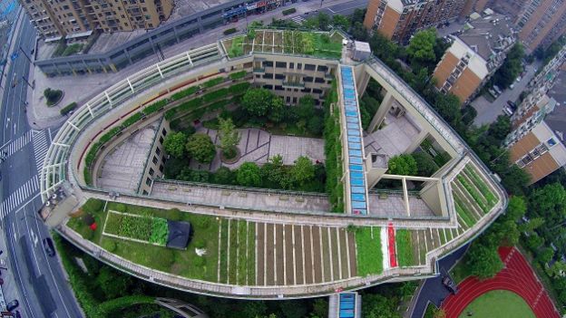 Escola da China produz alimentos em uma enorme horta no telhado do seu prédio!